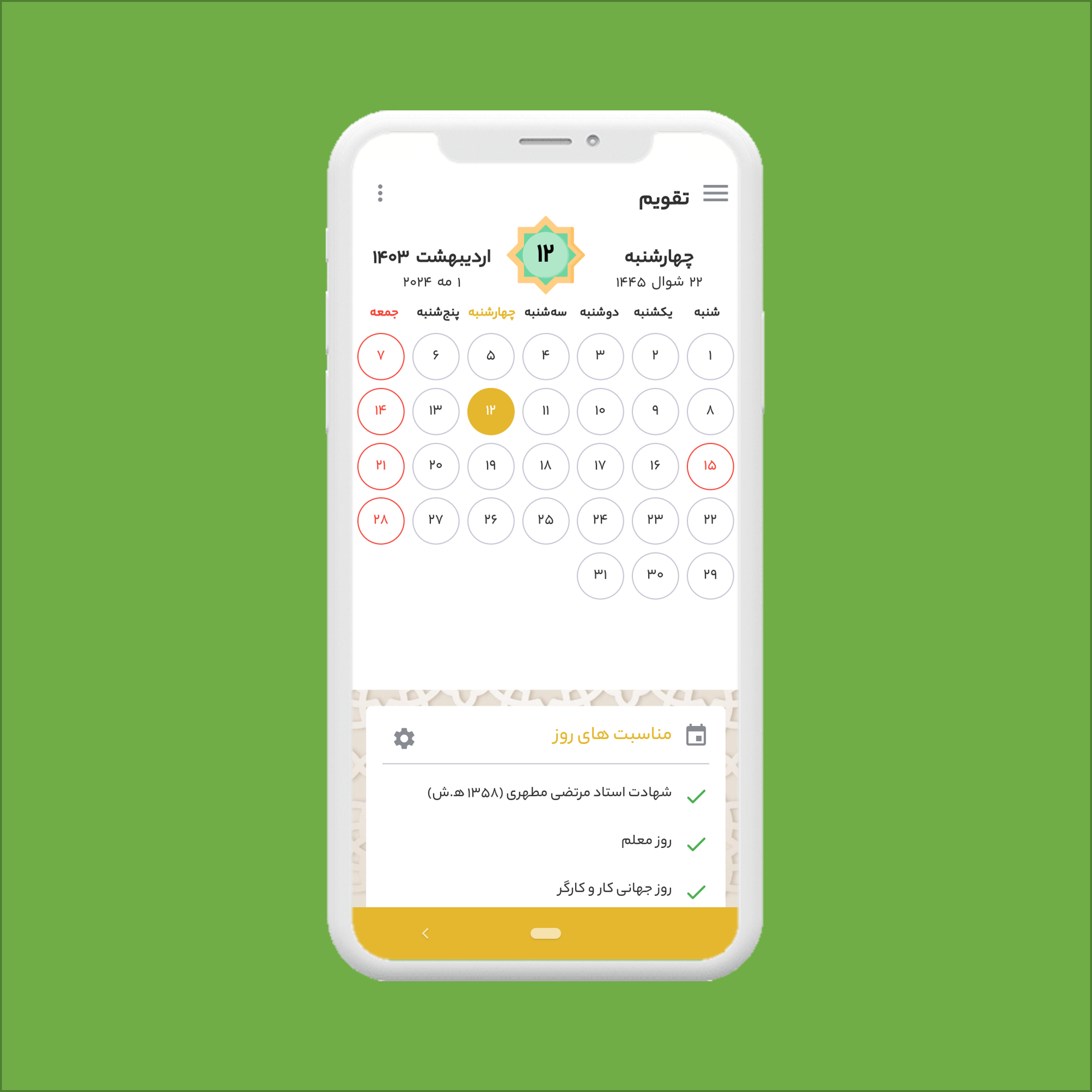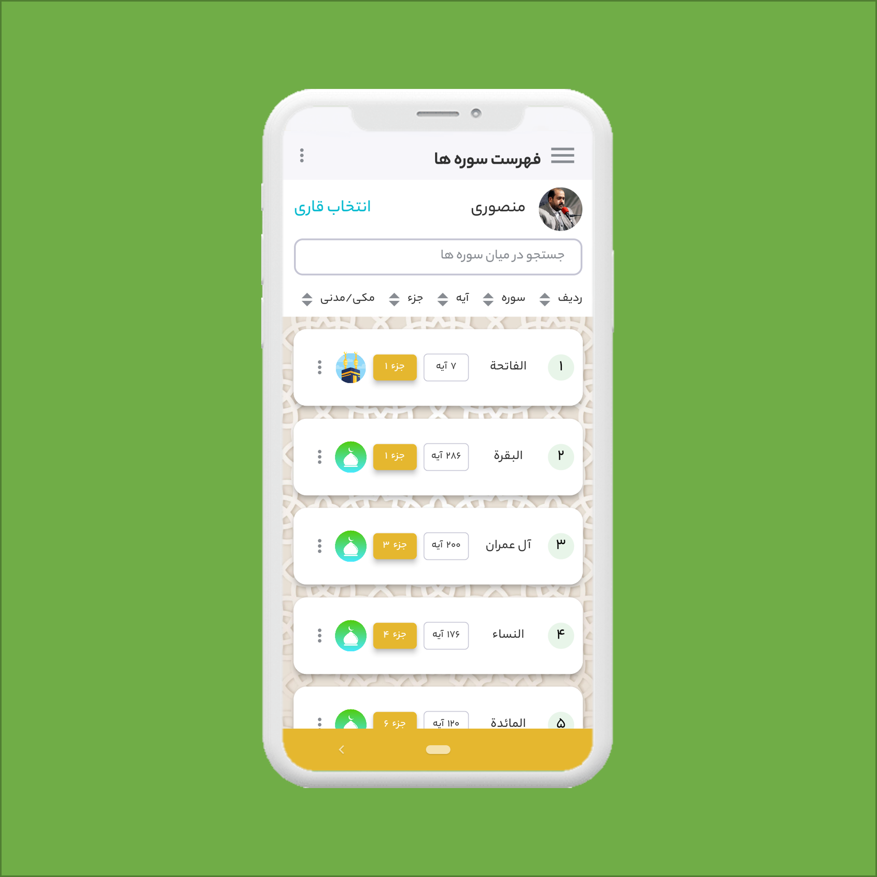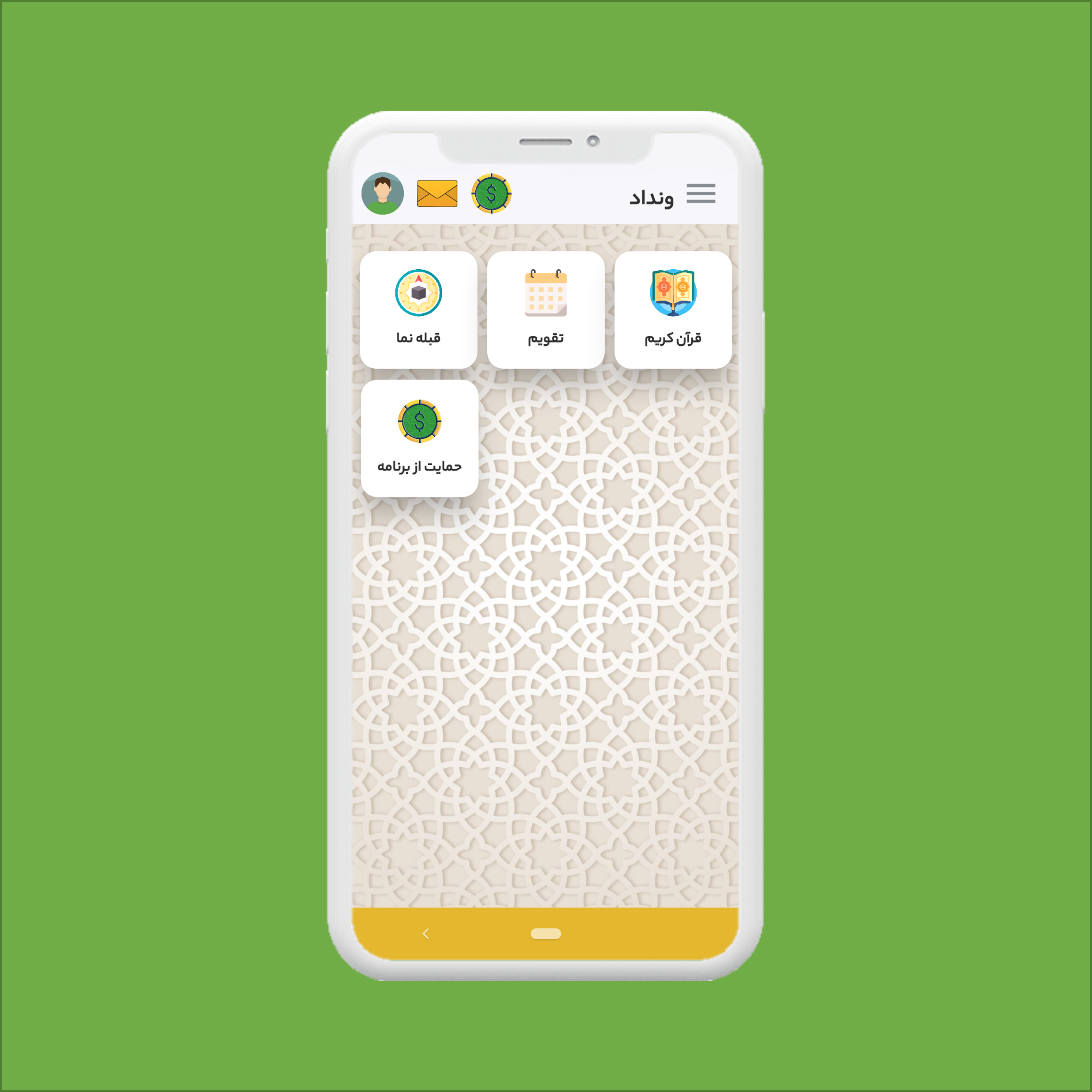 Quranic application of Vandad In this application, there are various features such as playing Quran verses with prominent reciters of the Islamic world. The ability to play the call to prayer and calendar are other features of this application. This app has a compass to identify the Qibla direction.
